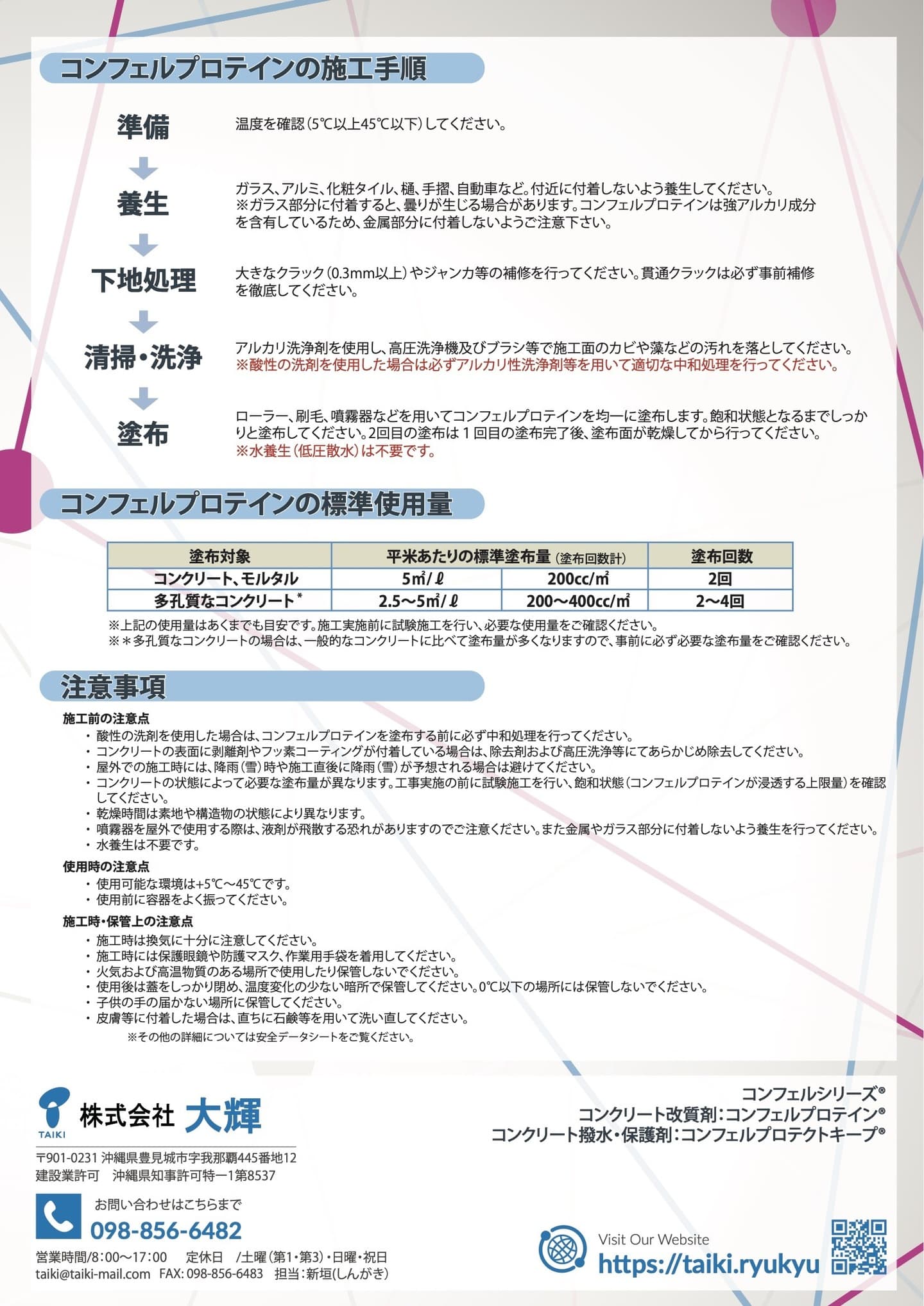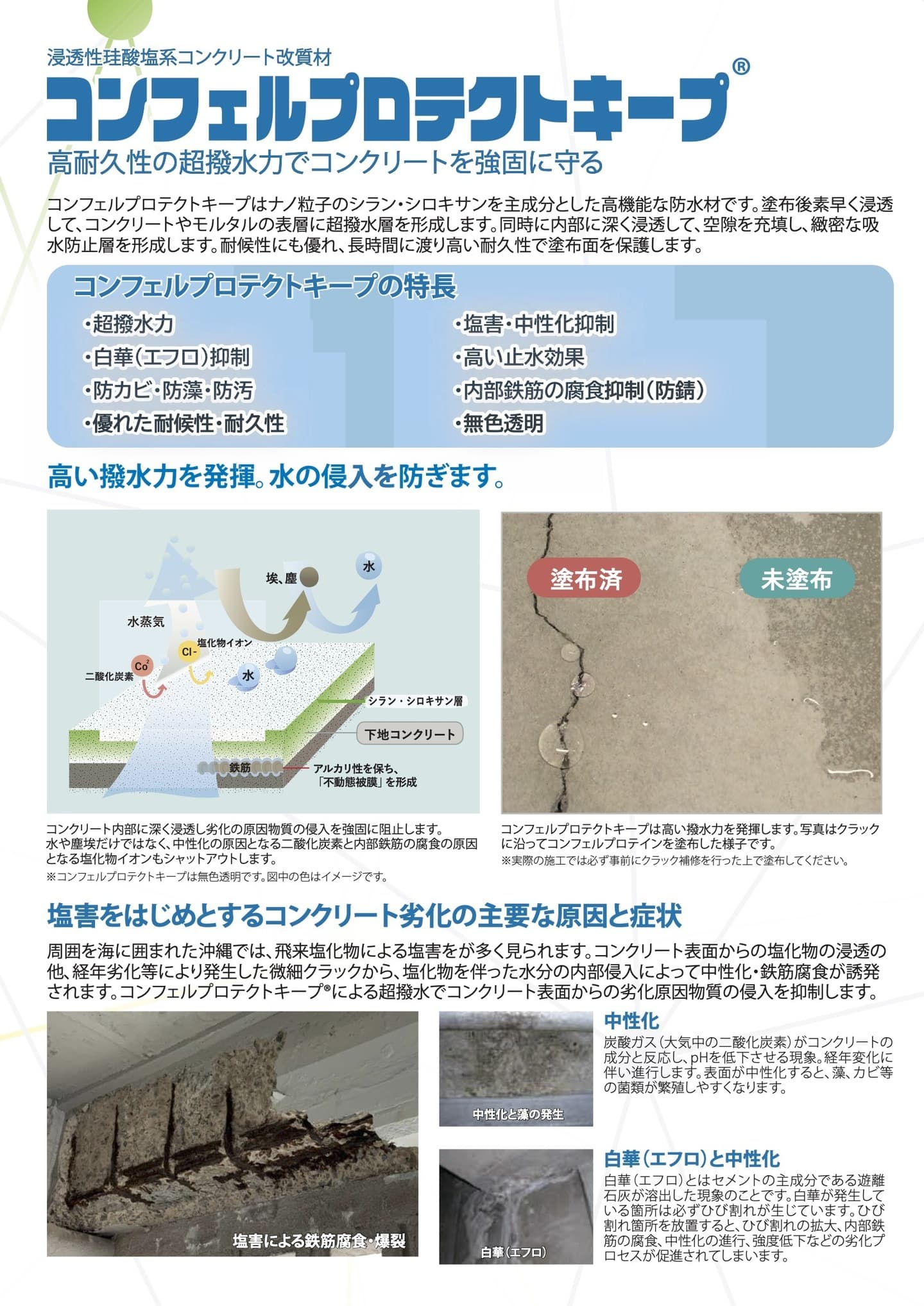 の新常識!剥がれない!超撥水コンクリート保護材コンフェル、目で見てわかる撥水性、塗装、塗り替えをご検討の際は是非ご利用ください、建物を中からと外から、守ります!染み込むから効く!株式会社大輝
